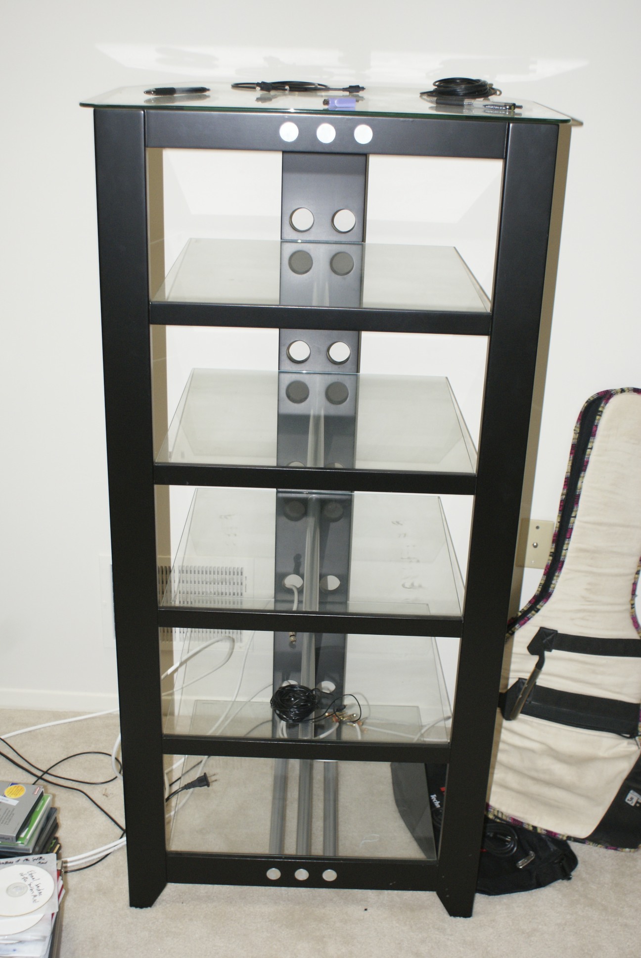 The Sanus rack has 6 shelves, and is reinforced with steel tubes at the bottom to handle the heaviest of amps. My GFA-7607, weighing around 50lbs, caused no problems. I can't seem to find the line of AV rack it is, but have included a picture.