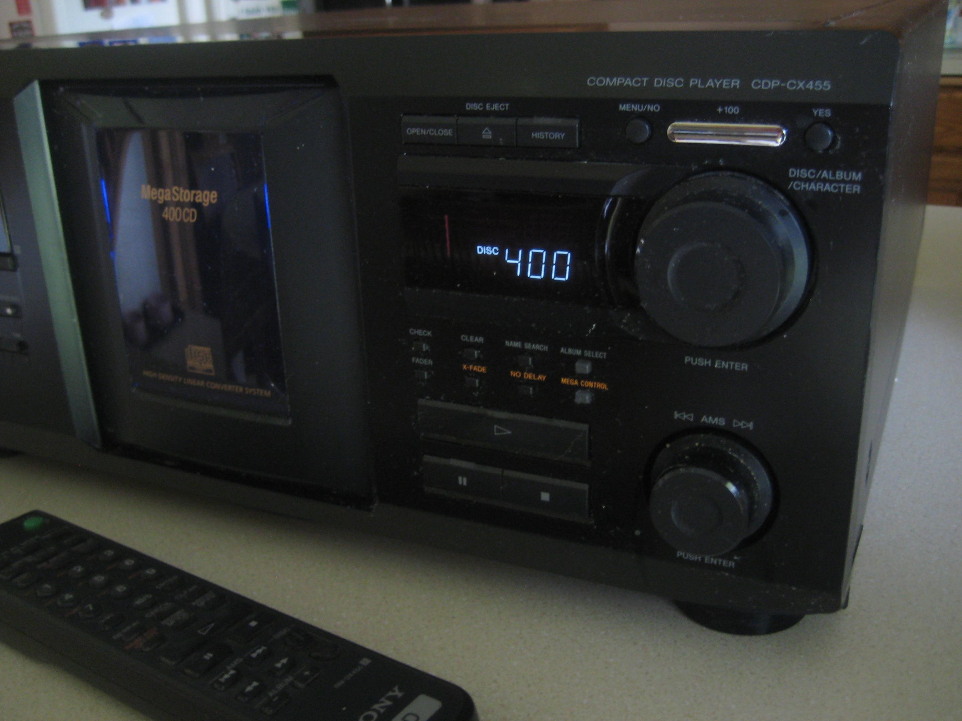 FS Nice Sony CDP CX 455 400 disc CD changer w remote. I ended up with this as part of a package deal to get something I wanted I actualy thought about keeping it as they are pretty cool,but in the end I probably should not. In nice shape with a few scratches on the top. Front is nice. inclues remote Asking $125 pr BO Thanks