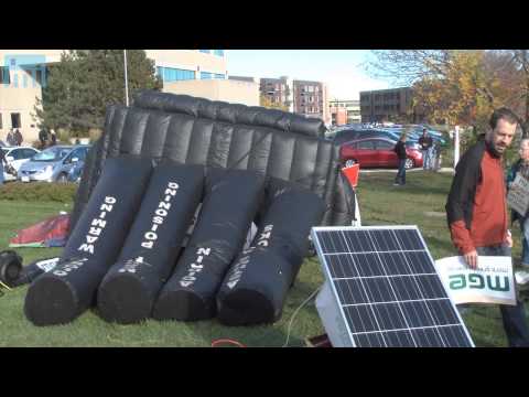 I wonder if they used recycled plastic to make that blow-up coal plant? But hold it were did the plastic come from for the recycled plastic. I also wonder if the plastic holding those toxic chemicals in those batteries was also recycled?