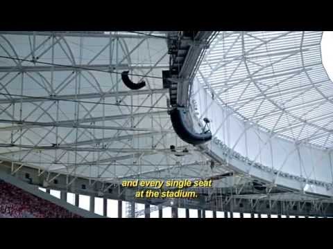 Many people don't know about Bose's Pro line of products. We do make some big stuff. Below is one of my favorite videos. This company was tasked with installing the sound system for the main stadium. A couple of the guys in the video came to Mass to give a presentation of their work. It was cool to hear about it. This isn't a Bose marketing video, but one for the installers. There are many other videos for the Roommatch speakers out there if you are interested.