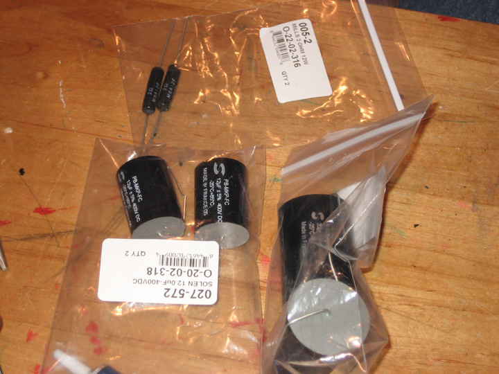 I went with Solens caps accross the board, a 33uf and a 12uf and Mills 12watt resistors 2.5 and 4.5.