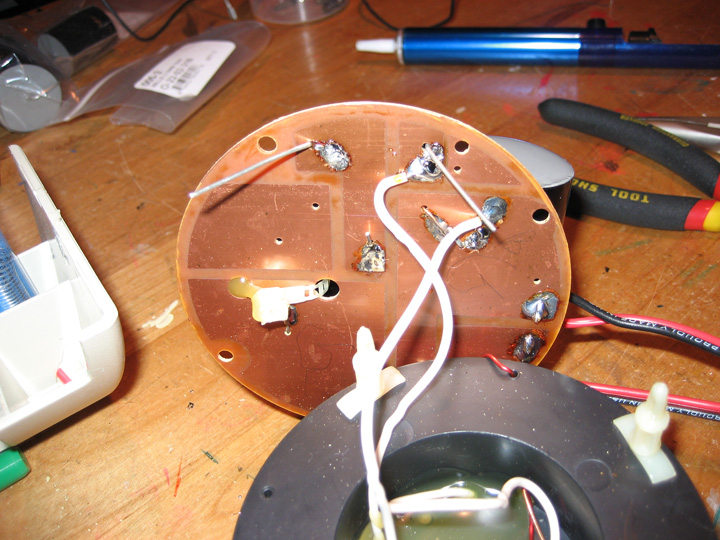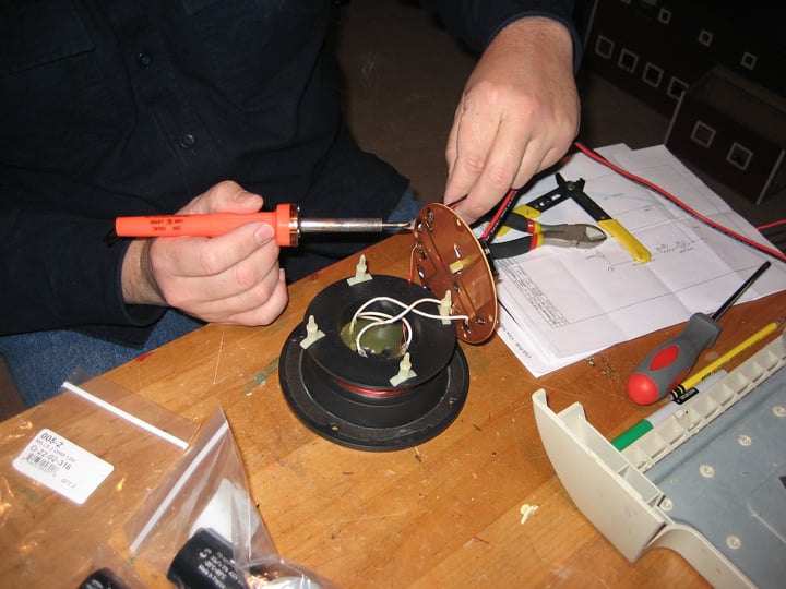 The trickiest part of the whole project, I found, is unsoldering and soldering back the copper wire coming from the underside of the xover from the main coil.