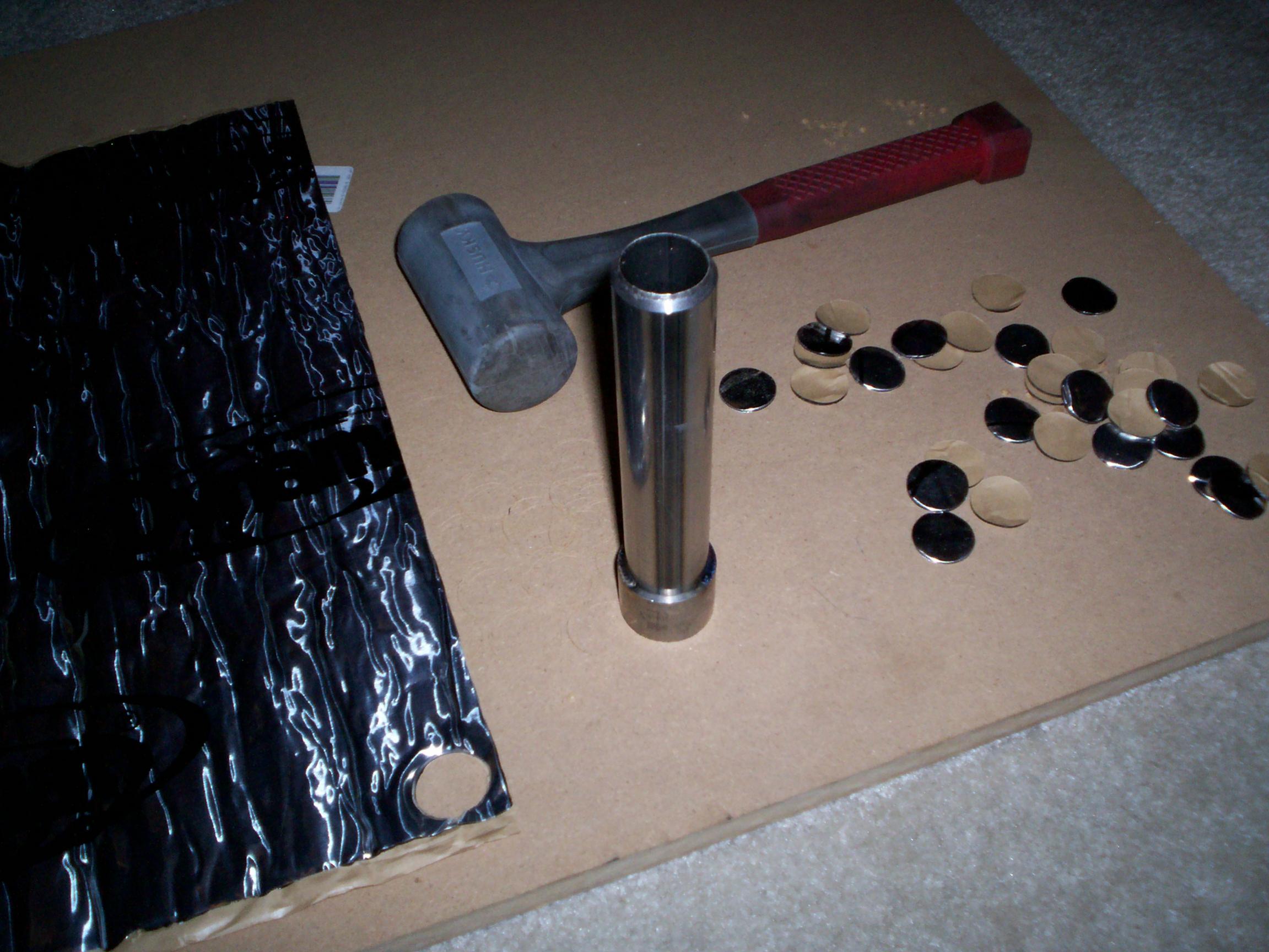 I took a piece of pipe and sharpened the end to punch Quarter sized circles for my drivers. I punched enough to do my 1.2tl's and my 1C's.