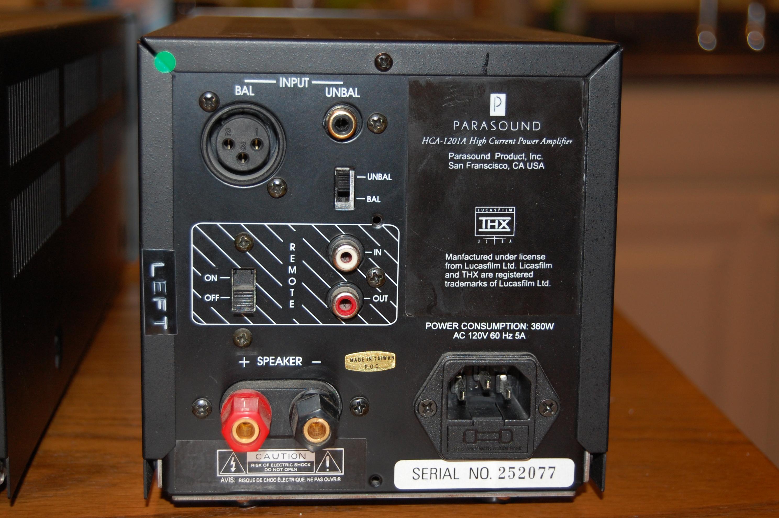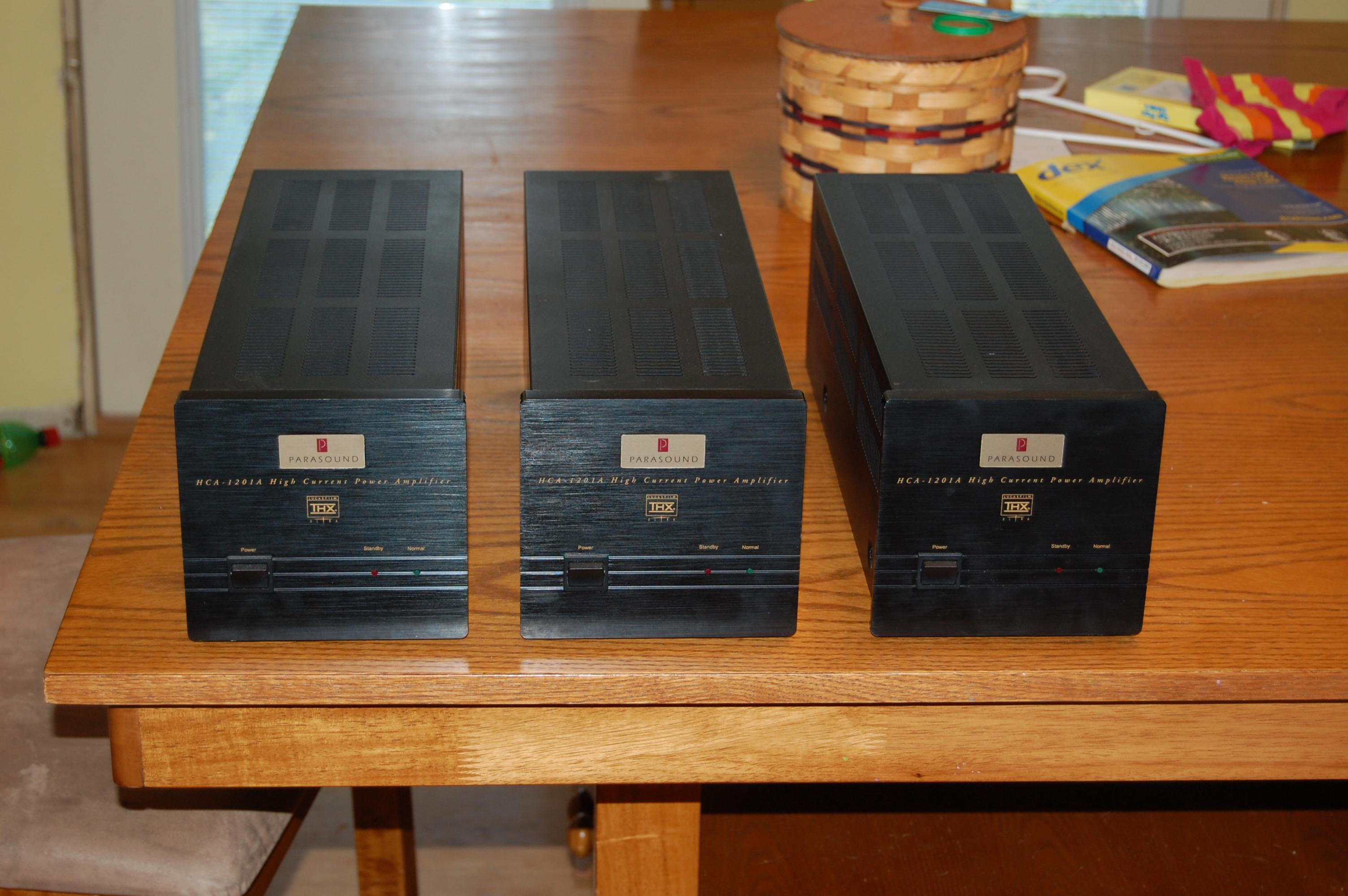 Well I have decided to see if anyone would be interested in my 3 parasound 1201-a monos. They are in excellent shape I would give them a rating of 8/10. I have the double boxes for two and only a single box for the other but rest assured they would be packed very well. I will post pics apon request. I am asking 185.00 each or will make a deal on all three + shipping. These would make a good set up for your front sound stage in a HT setup.