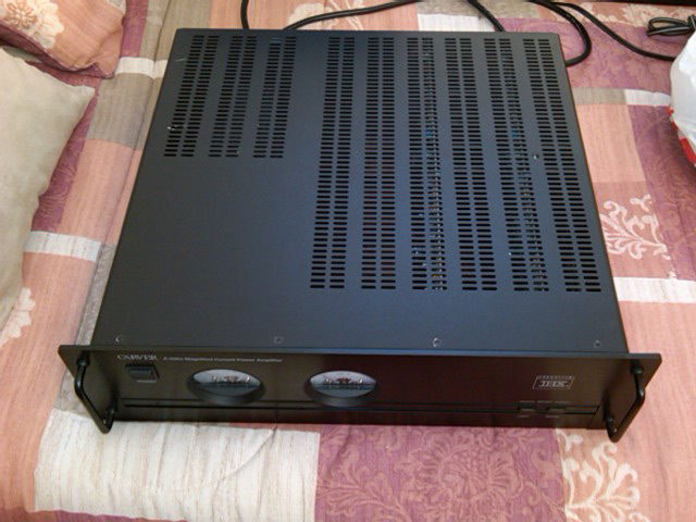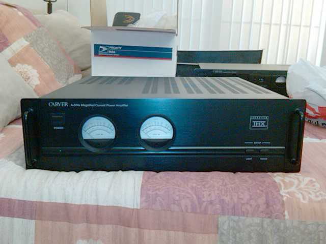 This is a very nice Carver A-500X 250WPC amp. It's in excellent cosmetic condition, (see photo of a small scratch on top) and works great. Meter lights work. I had bought this amp to power the rear channels on my 7.1 system, but don't need it now since I bought a really nice Sunfire 405X5 Sig. $400 plus shipping and paypal fees.