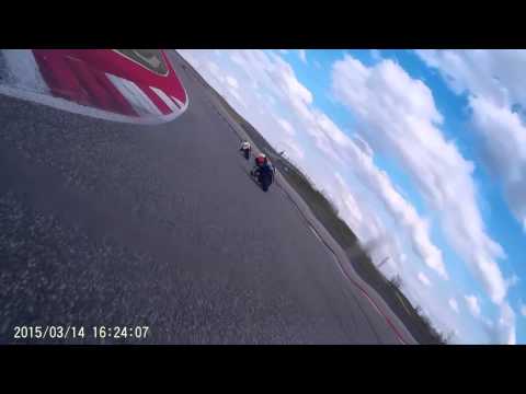 Circuit of the America's from this last weekend. I'm on the blue 512 bike with the white helmet. The video changes between my front facing camera and another instructors front & rear facing cameras.